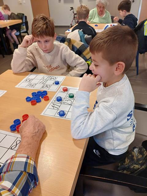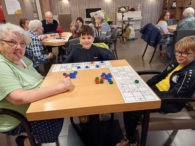 De leerlingen van het 3de leerjaar brachten een warm bezoek aan het rusthuis voor een gezellig potje bingo. Samen met de bewoners werd er gelachen, geconcentreerd gespeeld en luid “bingo!” geroepen. Een fijne ontmoeting die voor iedereen een glimlach opleverde.