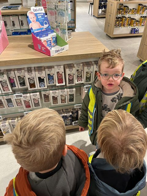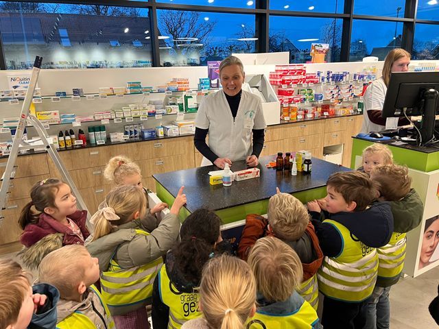 De kleuters van de 2de kleuterklas trokken op ontdekkingstocht naar de apotheek. Ze leerden hoe je gezond blijft en wat je helpt om weer beter te worden. Met grote ogen en veel nieuwsgierigheid namen ze alles in zich op!