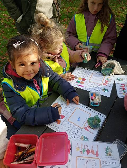 Ze gingen op zoek naar paddenstoelen, ontdekten verschillende bomen en leerden alles over hun vruchten.