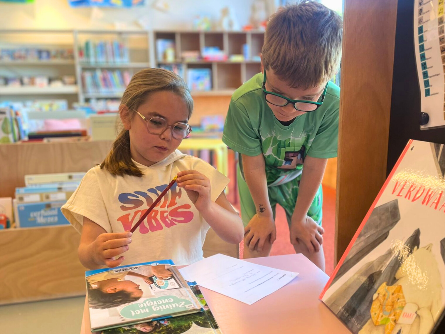 De leerlingen van het 2de leerjaar doken met veel enthousiasme de bib in voor het bibspel! Al spelend ontdekten ze waar je welke boeken kan vinden, hoe alles in de bib werkt en hoeveel moois er te lezen valt. Van strips tot weetjesboeken: de bib is een echte schatkamer vol verhalen! ✨📘